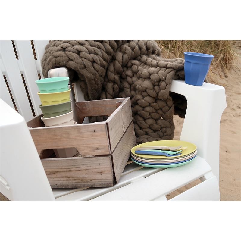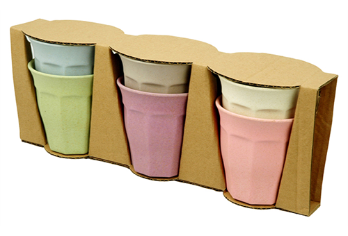 Stylish drinking cups in 6 different soft colors. Handy for at the swimming pool, or to take to a picnic. Made from bamboo and corn