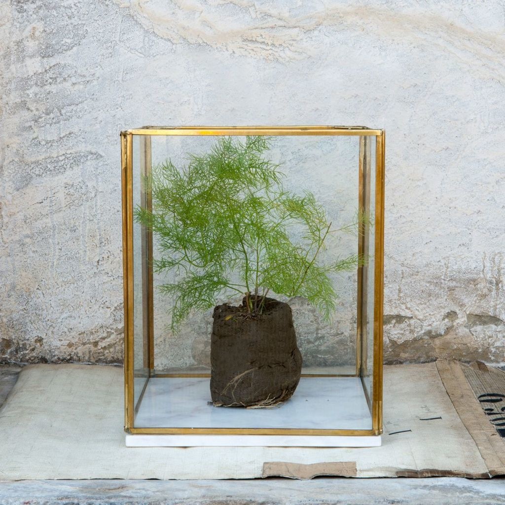 This beautiful Rafiq Hurricane lantern with its marble base and copper details looks beautiful in every room. Fill it with plants, candles or whatever you want.