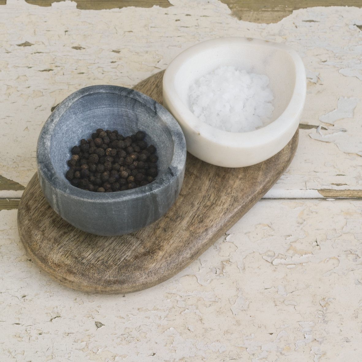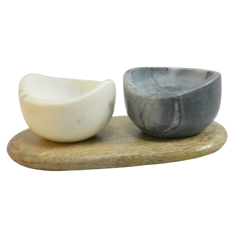 The marble pots are handmade and come with a wooden board.