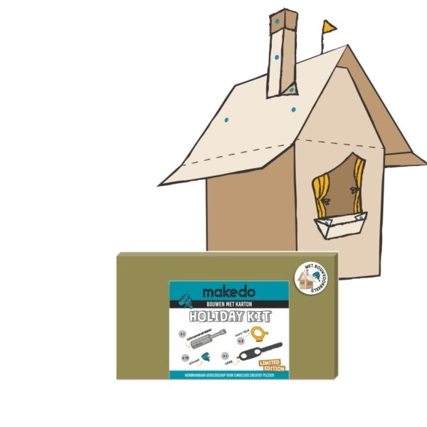 We have the Holiday Kit especially for the summer. A unique package from Makedo to build your own playhouse, wigwam or festival tent made of cardboard. The Holiday Kit comes in a kraft gift box. Nice to build, give as a gift or send as a seasonal gift!