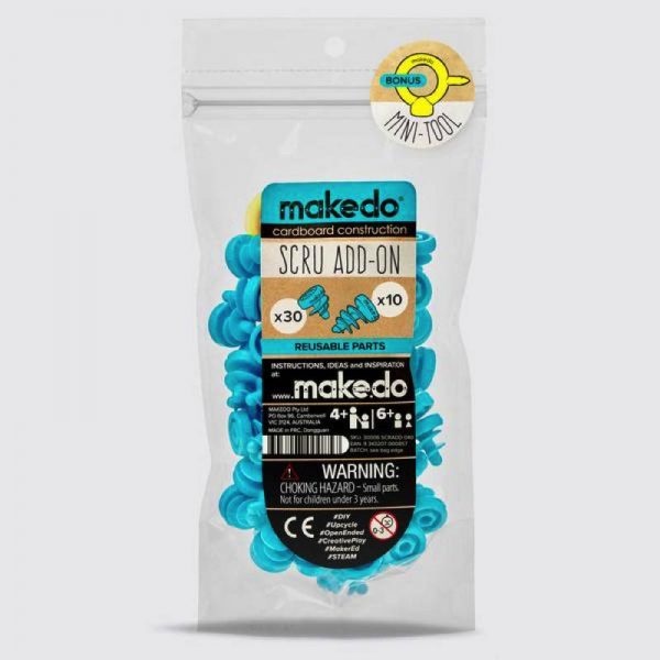 Finally here is the expansion with extra screws for the Makedo toolkits. This set consists of extra screws and a bonus mini tool to make even bigger creations. Recycling and reusing old cardboard has never been more fun than with Makedo's materials. This set is an extension to the starter toolkit, so that you can build endless fun objects.