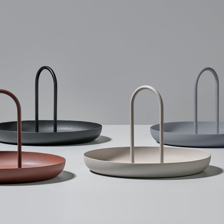 The round Singles Tray is made of powder coated metal in different colors. Because of the modern design it fits in any environment and sets noble accents.