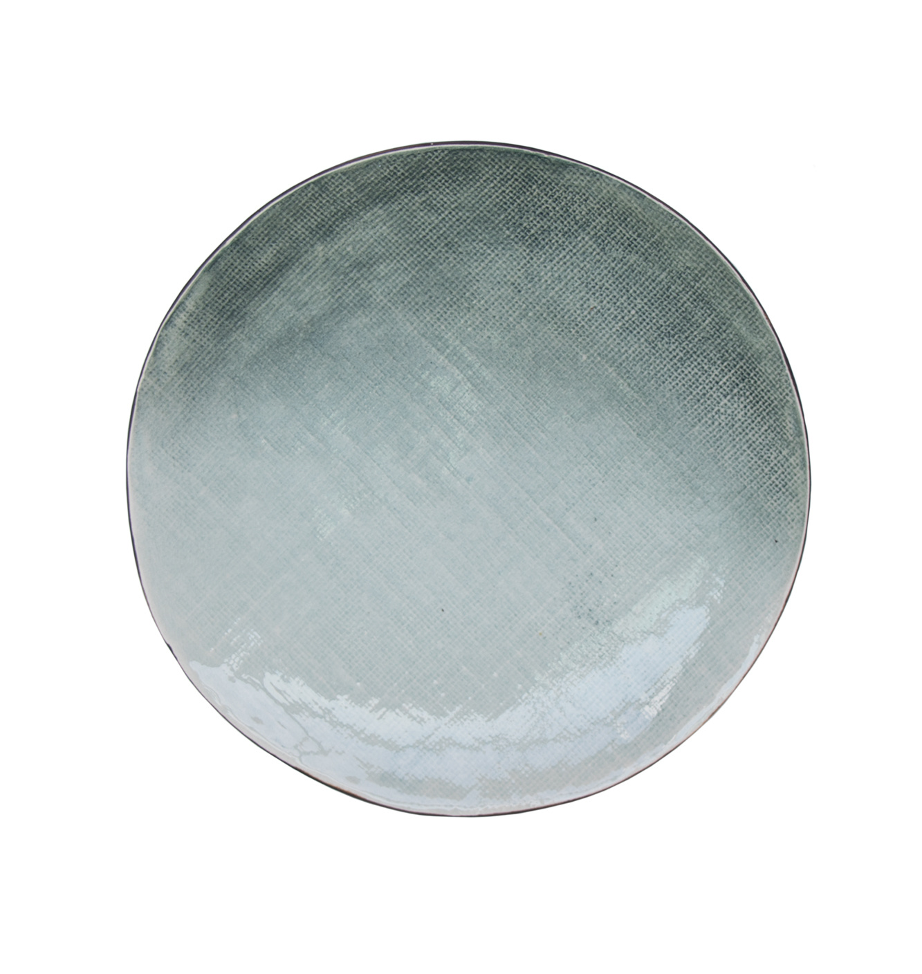 This plate is made of earthenware and the reactive glaze gives the plate a unique appearance. Because of this finish the board has both light and dark gradients in the colors green and gray. A relief is created so that the structure resembles a canvas that has been pressed into it.