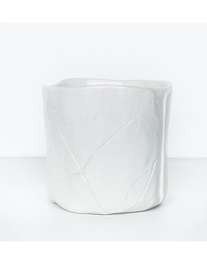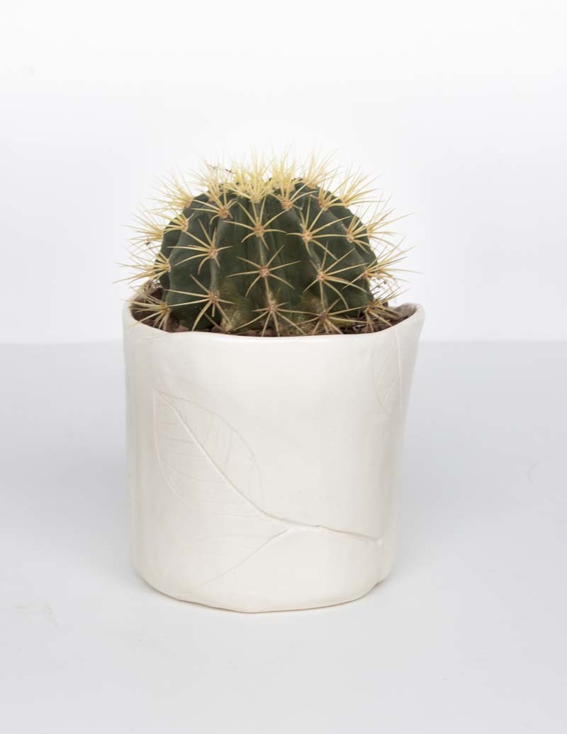 By following the organic form of a fern, Urban Nature Culture's carved plant pot was created using real leaves by pressing them into the clay and thus displaying an impression of nature.