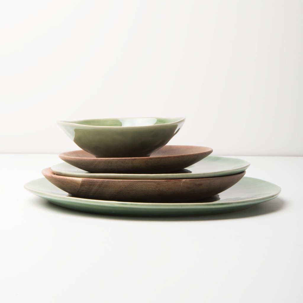 Ceramic plate from Urban Nature Culture. This plate is made by Portuguese craftsmen and has a green color with a diameter of approximately 28 cm. Each piece is handmade and unique!