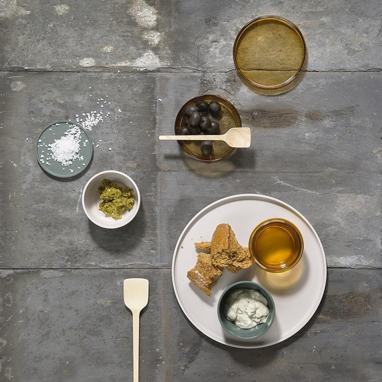 Peili is ideal for storing and serving. The elegant lid can be used for several purposes: as a lid but also as a serving tray for your tapas, snacks and for example as a tray. And the lid of the smaller dishes also function very well as a glass coaster.