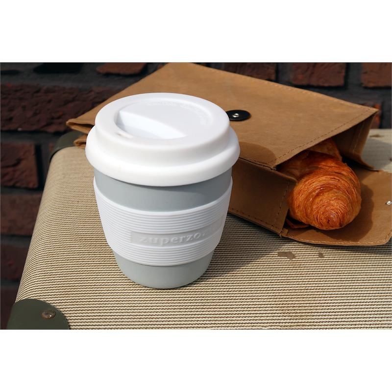 Een handige en lichte reisbeker op basis van bamboevezel en maïszetmeel. Verstevigd en gevormd met een melaminehars voor duurzaamheid. Start de ochtend met een heerlijke warme koffie of kruidenthee terwijl je onderweg bent!