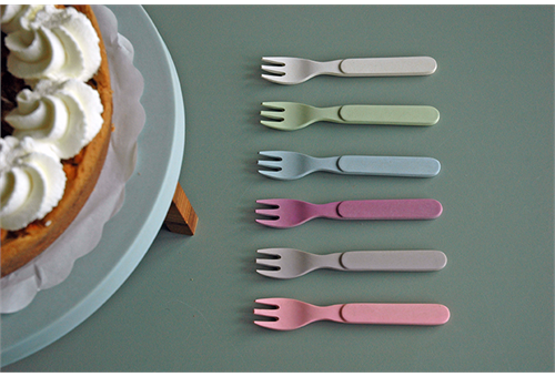 Set van 6 vorkjes gemaakt van bamboe- en maïsvezels. Geschikt voor de vaatwas
