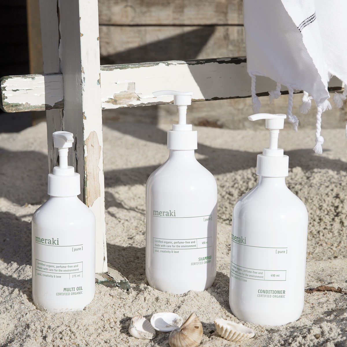 Het Deense merk Meraki heeft in haar huidverzorgingslijn Pure die 100% organic is en vrij van kunstmatige toevoegingen de keuze uit een handzeep, handlotion, bodwash en bodylotion.