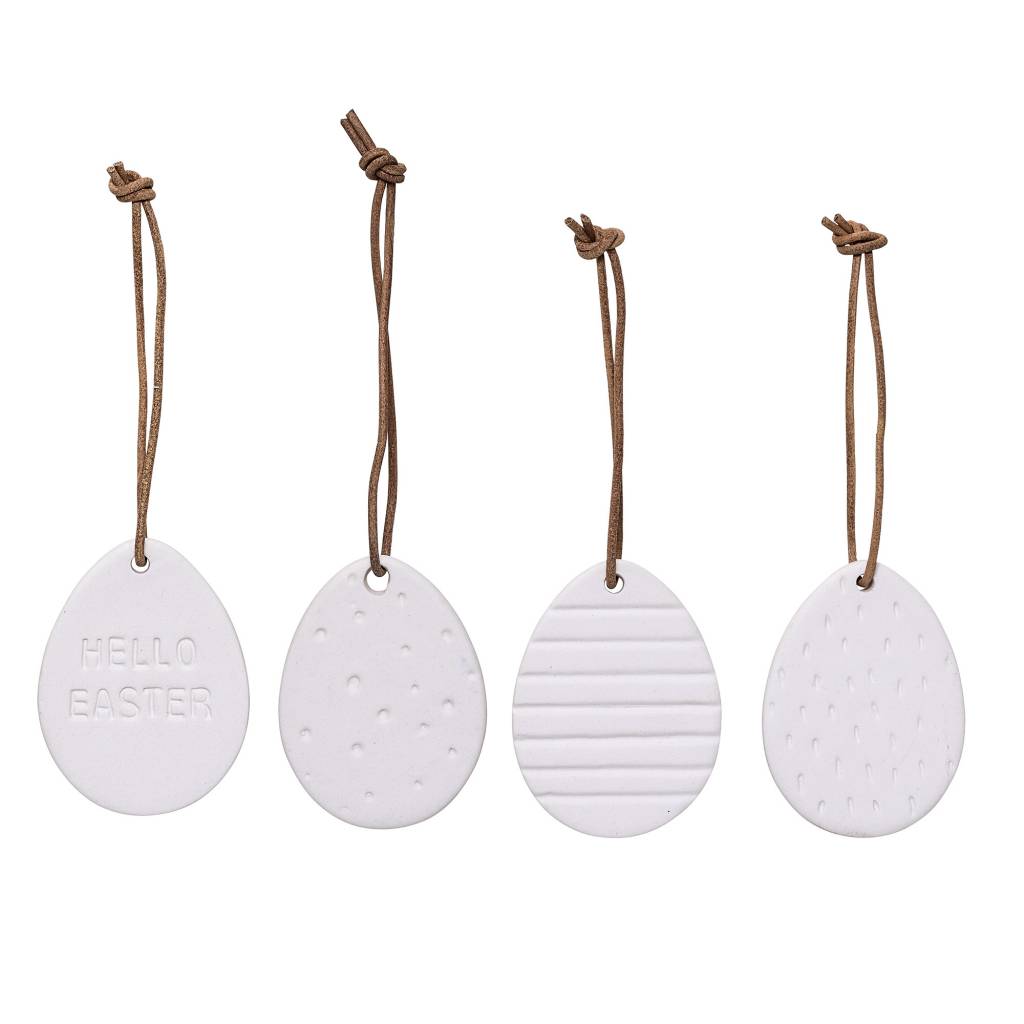 Set van 4 aardewerken (mat) decoratieve eitjes in wit van Bloomingville.