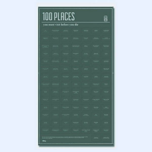 check laatste blog voor info!Deze poster met 100 bestemmingen die je bezocht moet hebben in je leven, is een must have