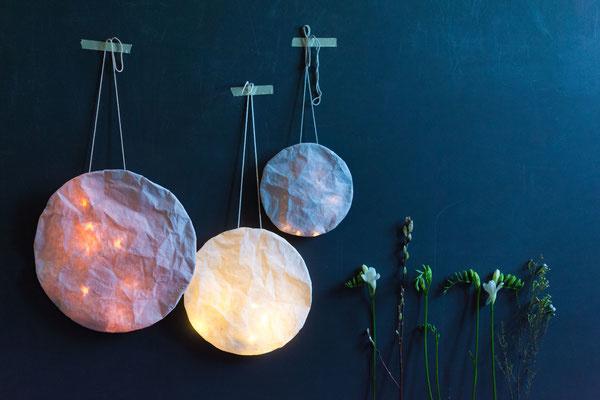 De papieren ballon is gemaakt van natuurlijke cellulose vezels. Een groen alternatief dat keer op keer hergebruikt kan worden. Het is een flexibele en toch stevige stof. Plekjes kunnen schoongemaakt worden met een vochtig doek of wassen met een beetje wasmiddel. De lamp krimpt en stretcht niet.