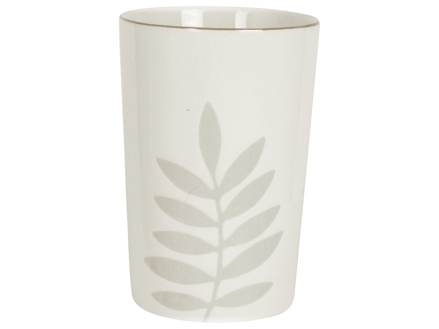 Mooie grote mok met gedetailleerde details. Een varen en gouden rand