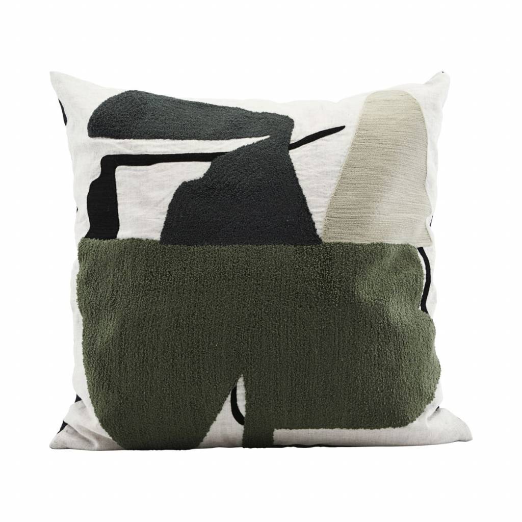 check laatste blog voor info!Stoere kussenhoes Art van House Doctor. De kleur combinatie van zwart, groen en beige maakt het tijdloos en stijlvol