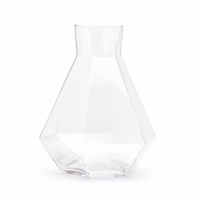 Deze unieke karaf van kristalglas dat met de mond in de elegante vorm van een diamant geblazen is, kan zowel rechtop staan als op zijn kant liggen zonder inhoud te verliezen. Er is voor deze vorm gekozen om je er van bewust te maken dat niet alleen diamanten maar ook water steeds zeldzamer wordt. Behandel water dus met zorg en serveer het uit een mooie karaf.