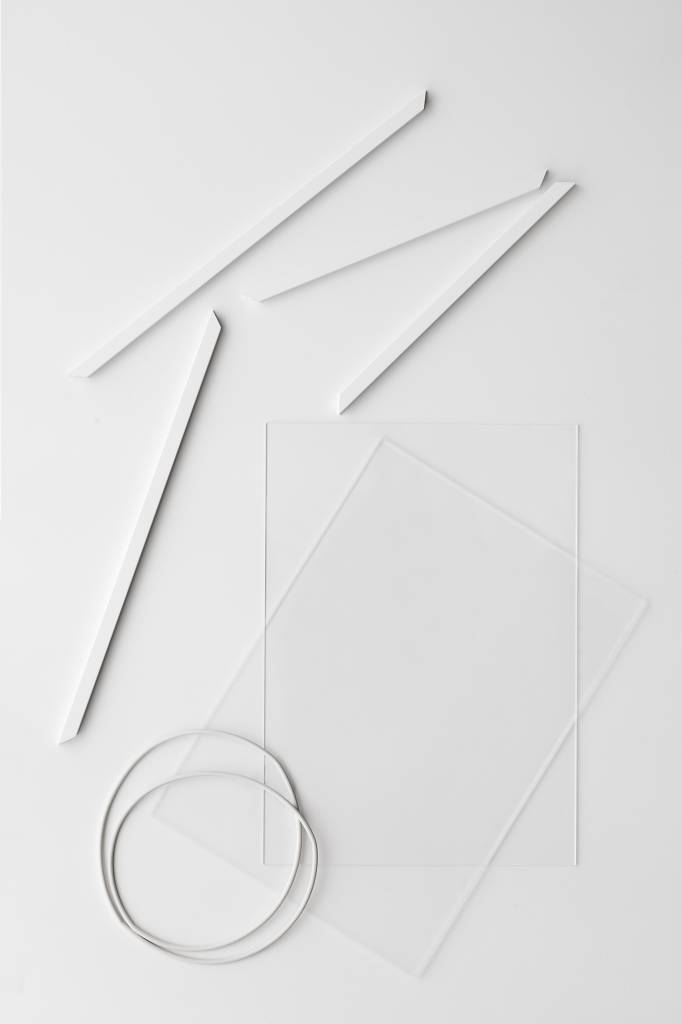 Plaats tussen de bijgeleverd plexiglazen delen bijvoorbeeld grafisch werk als posters, kaarten, foto's, maar ook gedroogde bloemen.
