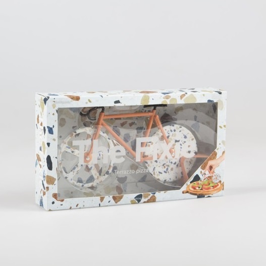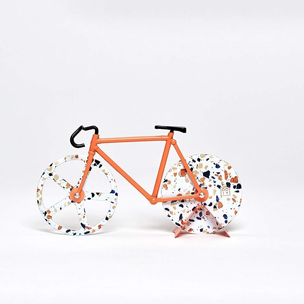 Deze pizzasnijder Fixie Pizza cutter in de vorm van een racefiets van Doiy werkt snel en simpel. Deze fiets racet door je pizza heen! Zet hem na gebruik gemakkelijk weer op zijn standaard neer ter decoratie.
