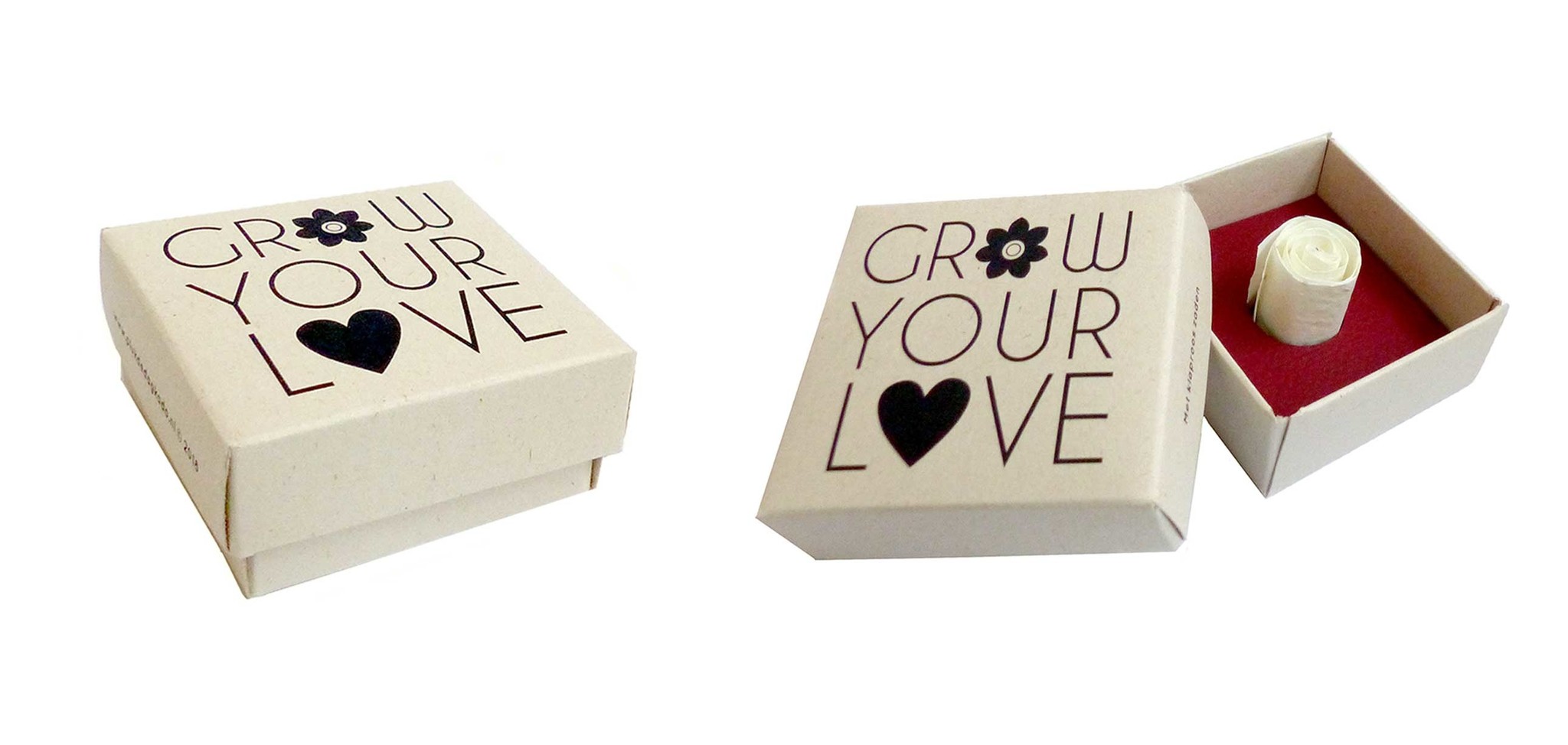 Met Grow your love kunnen twee mensen de liefde voor elkaar laten groeien. In het doosje zitten twee groeipapieren ringen. Ieder schrijft zijn/haar liefdeswens op een groeipapieren ring, stopt het in de grond, geeft het water, veel aandacht en dan… ta da! De liefde ontkiemt in de vorm van prachtige bloemen. Een mooi geschenk om te geven aan je bruiloftsgasten of aan je Valentijn. Laat de liefde maar ontkiemen!